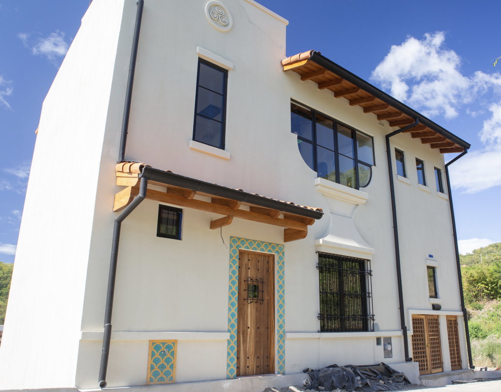 Description: Masonry block and concrete home with electrical, mechanical, and air conditioning systems. Features teak wood coffered ceilings and columns, melina wood eaves, European-style aluminum windows, melamine furniture with quartz countertops, gypsum ceilings, porcelain tile flooring, Goltex interior paint, and acrylic stucco exterior.
